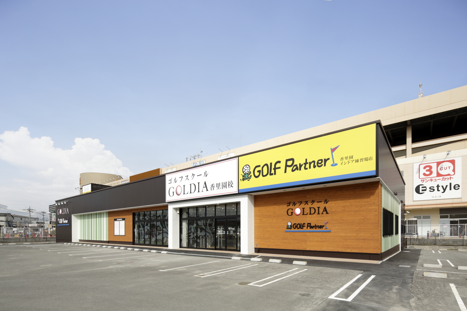 大阪府寝屋川市に建つ、ゴルフショップ兼練習場である。 交通量の多い4車線の幹線道路と西側で接道する1200㎡の敷地の東側一角に建つゴルフショップ兼ゴルフ練習場で…